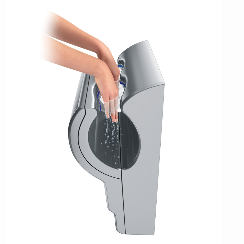 - Innovativt design som tørre hænderne på både håndryggen og håndfladen på samme tid.